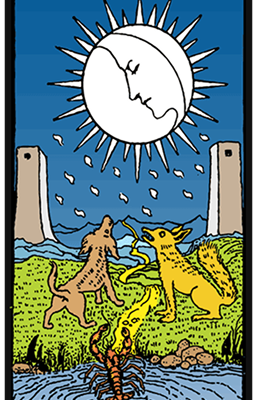 La Luna (XVIII): Representa la ilusión, la intuición y los miedos ocultos.